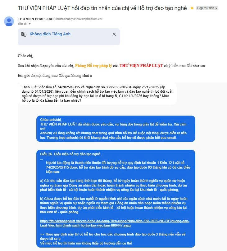 Theo Luật Việc làm số 74/2025/QH15 và Nghị định số 338/2025/NĐ-CP ngày 25/12/2025 (áp dụng từ 01/01/2026), liên quan đến chính sách hỗ trợ tạo việc làm và đào tạo nghề thì bộ đội xuất ngũ có được hỗ trợ học phí khi đăng ký học lái xe ô tô hạng B, C1 từ 1/1/2026.